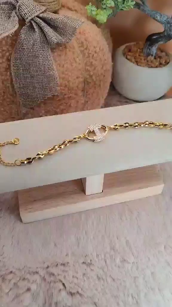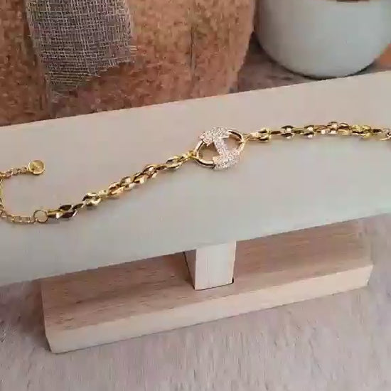 Bracelet en acier inoxydable doré, sa chaîne est composée de maillons grain de café, reconnus pour leur solidité.