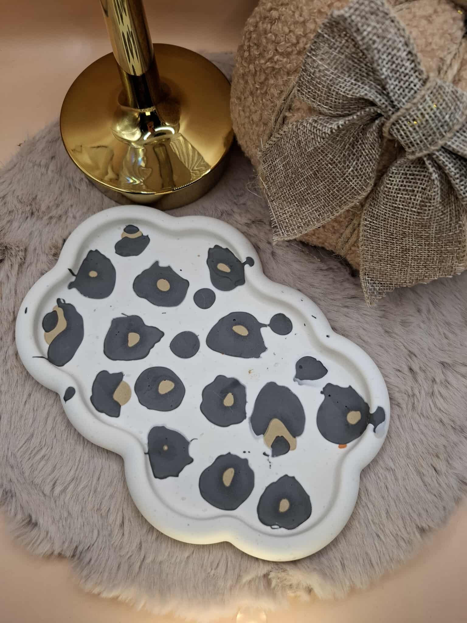 Plateau en forme de nuage en Jesmonite avec un motif léopard.
